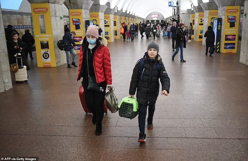 وهرع كثير من الأوكرانيين إلى الحدود الغربية، هربًا من العملية العسكرية الروسية، وتحولت محطات المترو إلى ملاجئ للاحتماء من الضربات الروسية، حسب صحيفة ديلي ميل البريطانية.