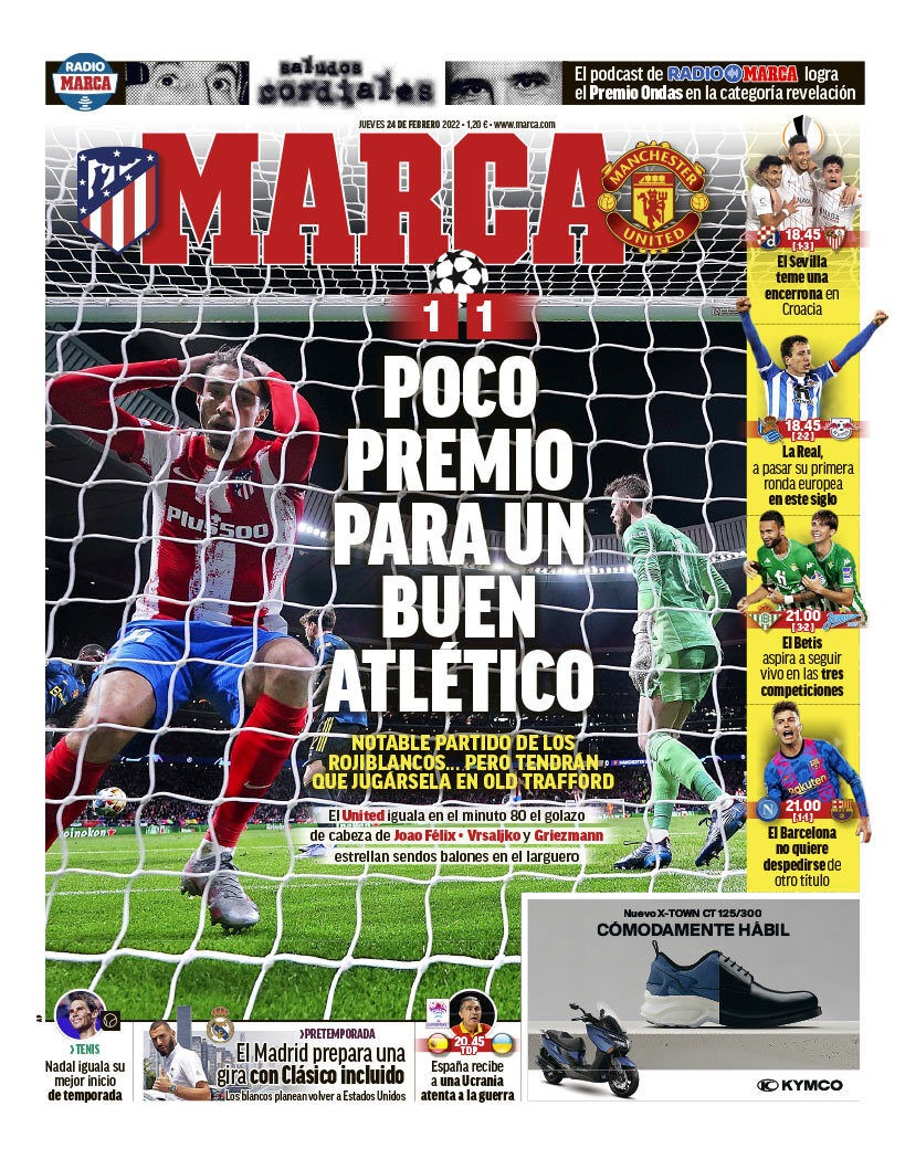 يرصد القاهرة 24 لمتابعيه جولة في الصحف العالمية اليوم الخميس، والتي شهدت بعض الأنباء الهامة على صعيد الدوريات الأوروبية الكبرى، وخاصة مع نتائج دوري أبطال أوروبا أمس بتعادل فريق مانشستر يونايتد مع أتلتيكو مدريد وكذلك تعادل أياكس وبنفيكا، إلى جانب توهج محمد صلاح قائد منتخبنا الوطني المحترف ضمن صفوف ليفربول في البريميرليج بهدفيه أمس ضد ليدز يونايتد.