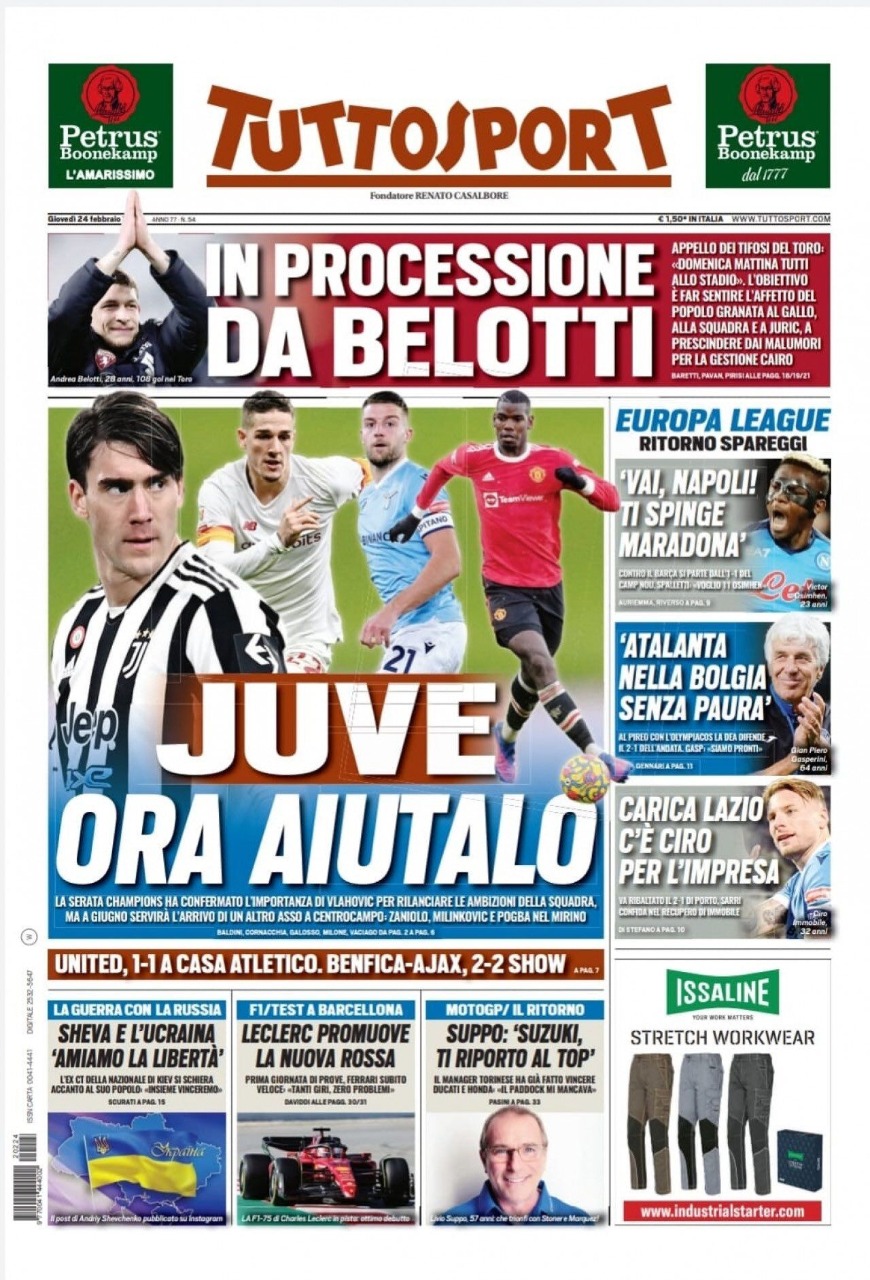سلطت الصحيفة الضوء على ضرورة وجود صفقات وتدعيمات لفريق يوفنتوس في الميركاتو الصيفي، حيث عنونت بـ يوفنتوس، دعم الفريق الآن.. أكدت ليلة دوري أبطال أوروبا على أهمية فلاهوفيتش لإعادة إطلاق طموحات الفريق، لكن في يونيو سيحتاجون إلى لاعب خط وسط آخر، وذلك مع ترشيح بوجبا، زانيولو، ملينكوفيتش سافيتش.
