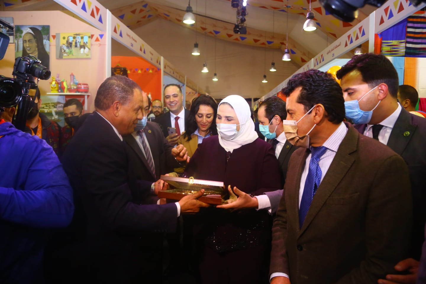 وأشارت وزيرة التضامن، إلى أن الوزارة تعمل على رعاية الأسر المنتجة وتسويق منتجاتها سواء اليدوية أو الحرفية أو البيئية أو التراثية عبر إقامة معارض متنوعة، كما تعمل على تطوير منتجاتهم، من خلال رفع مهارات العاملين من خلال 420 مركز أسر منتجة و71 مركز تكوين مهني، كما أنها تتوسع حاليًا في التدريب على مهارات إدارة المشروعات ومجال التسويق، هذا بالإضافة إلى تقديم خدمات تنظيم المعارض والأسواق، وخدمات الإقراض متناهي الصغر.