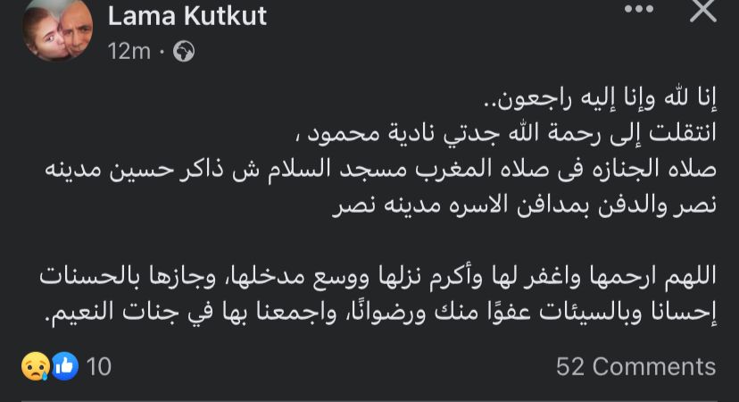 وتابعت لمي كتكت: اللهم ارحمها واغفر لها، وأكرم نزلها ووسع مدخلها، وجازها بالحسنات إحسانا وبالسيئات عفوا منك ورضوانًا، واجمعنا بها في جنات النعيم، وعلى الفور انهالت عليها التعليقات من قبل جمهورها وكل محبيها.