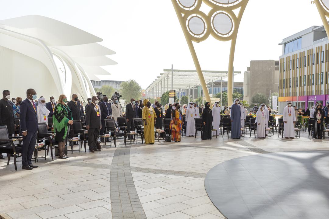 جاء الاحتفال بحضور سعادة الدكتورة مونيك نسانزابغانوا، نائبة رئيس مفوضية الاتحاد الأفريقي، والتي كان في استقبالها كل من معالي ريم الهاشمي، وزيرة الدولة لشؤون التعاون الدولي والمدير العام لإكسبو 2020 دبي، ومعالي الشيخ شخبوط بن نهيان بن مبارك آل نهيان، وزير الدولة في وزارة الخارجية والتعاون الدولي، في حفل رسمي أقيم في ساحة الوصل.