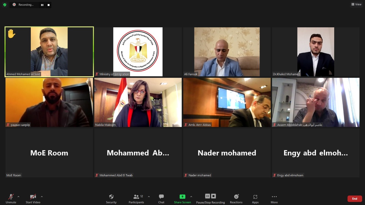 عقدت السفيرة نبيلة مكرم، وزيرة الدولة للهجرة وشئون المصريين بالخارج، اجتماعا، اليوم، عبر تطبيق زووم، بممثلي الجالية المصرية في مختلف المدن الأوكرانية؛ لمتابعة آخر المستجدات، والاطمئنان على أوضاعهم؛ في ضوء تطورات الوضع بالأزمة الروسية-الأوكرانية.