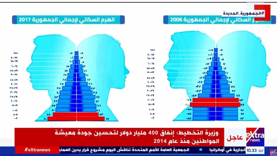 وأشارت وزيرة التخطيط والتنمية الاقتصادية إلى أننا سنواجه طفرة سكانية أخرى محتملة في الفترة من 2032 إلى 2040 لأن عدد المقبلين على الزواج في هذه الفترة شريحة كبيرة، مشيرة: نستهدف الوصول إلى معدل إنجاب 1.6 لكل سيدة.
