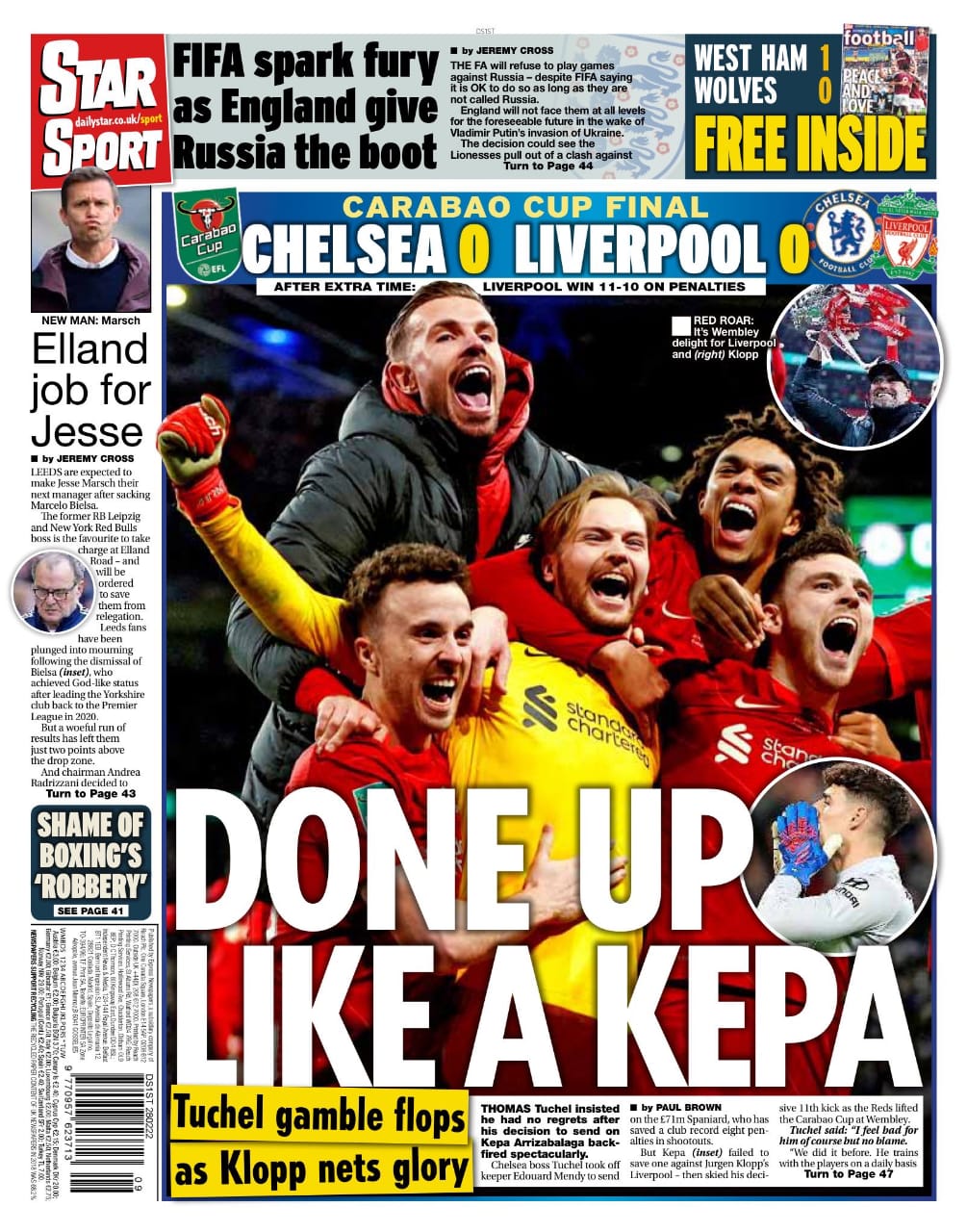 أما صحيفة ديلي ستار فقد عنونت قائلة: الاستفادة من أخطاء كيبا، كلوب يحقق اللقب.