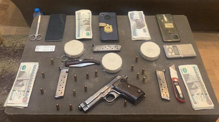 وضبط بحوزة المتهم 3 أسطوانات لمخدر الهيروين وزنت 500 جرام، وعدد من الأقراص المخدرة وطبنجة و3 خزينة، بالإضافة إلى عدد من الطلقات النارية ومبلغ مالي و3 هواتف محمولة وميزان حساس و2 سلاح أبيض.