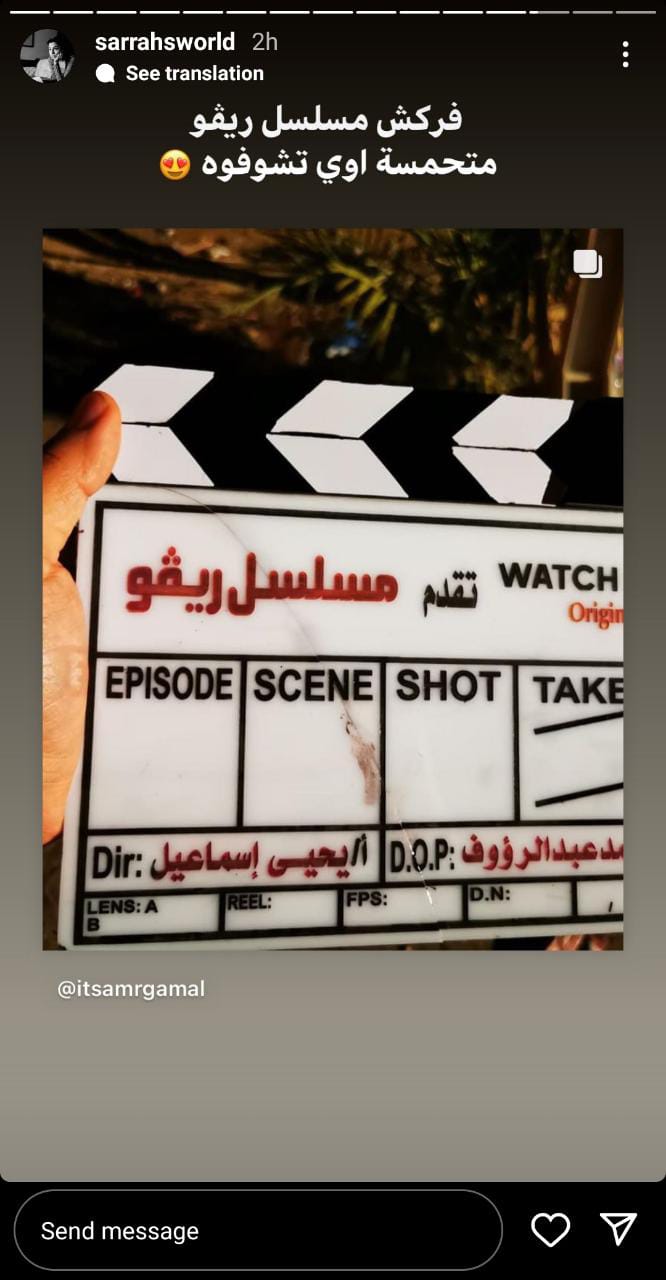 ونشرت سارة عبد الرحمن، عبر حسابها الشخصي بموقع تبادل الصور والفيديوهات القصيرة انستجرام صورة من كواليس العمل، وعلقت: فركش مسلسل ريفو متحمسة أوي تشوفوه.