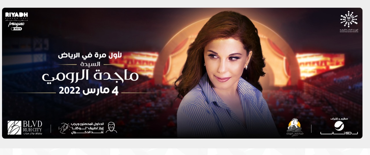 ولأول مرة تحيي الفنانة اللبنانية القديرة ماجدة الرومي، حفلًا في مدينة الرياض بالمملكة العربية السعودية، ذولك يوم 4 مارس المقبل، وتبدأ أسعار تذاكر حفل ماجدة الرومي من 230، 575، 863، 1875، 1150، وصولًا إلى 230 ريال سعودي.