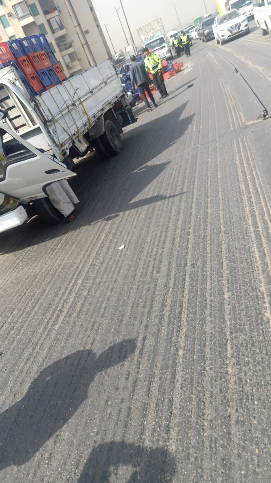 المرور تعلن طرقًا بديلة بعد حادثة تصادم سيارة نقل بـ 6 سيارات أعلى الدائري |صور