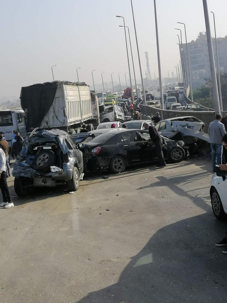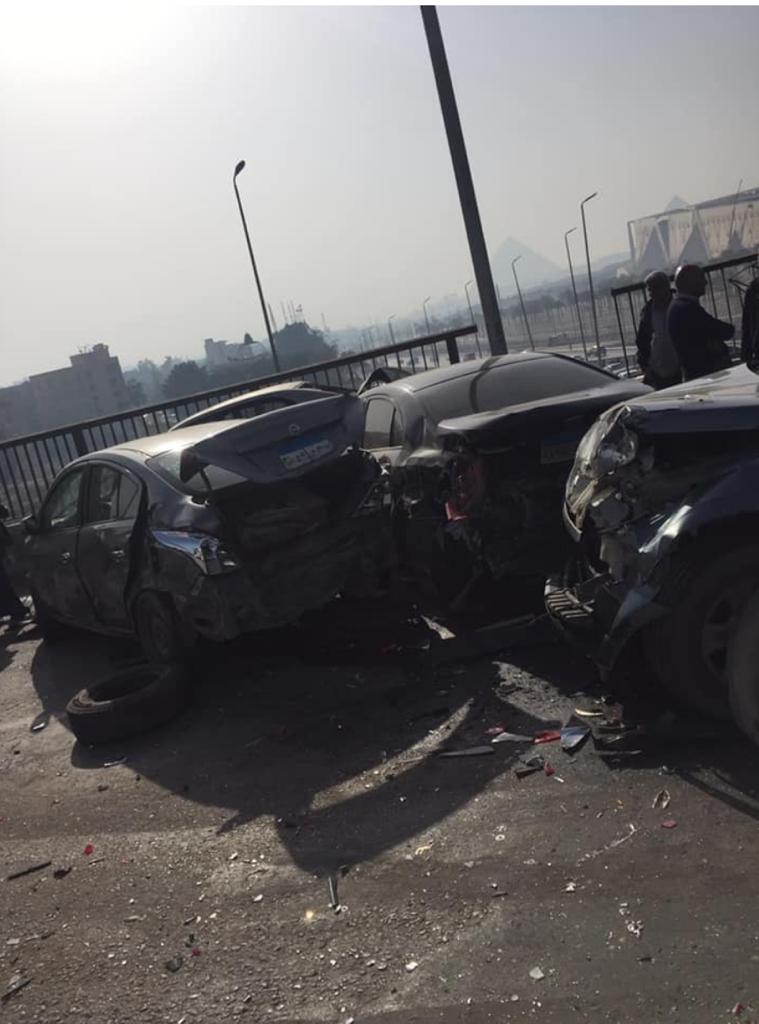 تبين بالفحص اصطدام سيارة نقل بـ6 سيارات أخرى، في الاتجاه القادم من الواحات اتجاه المريوطية.