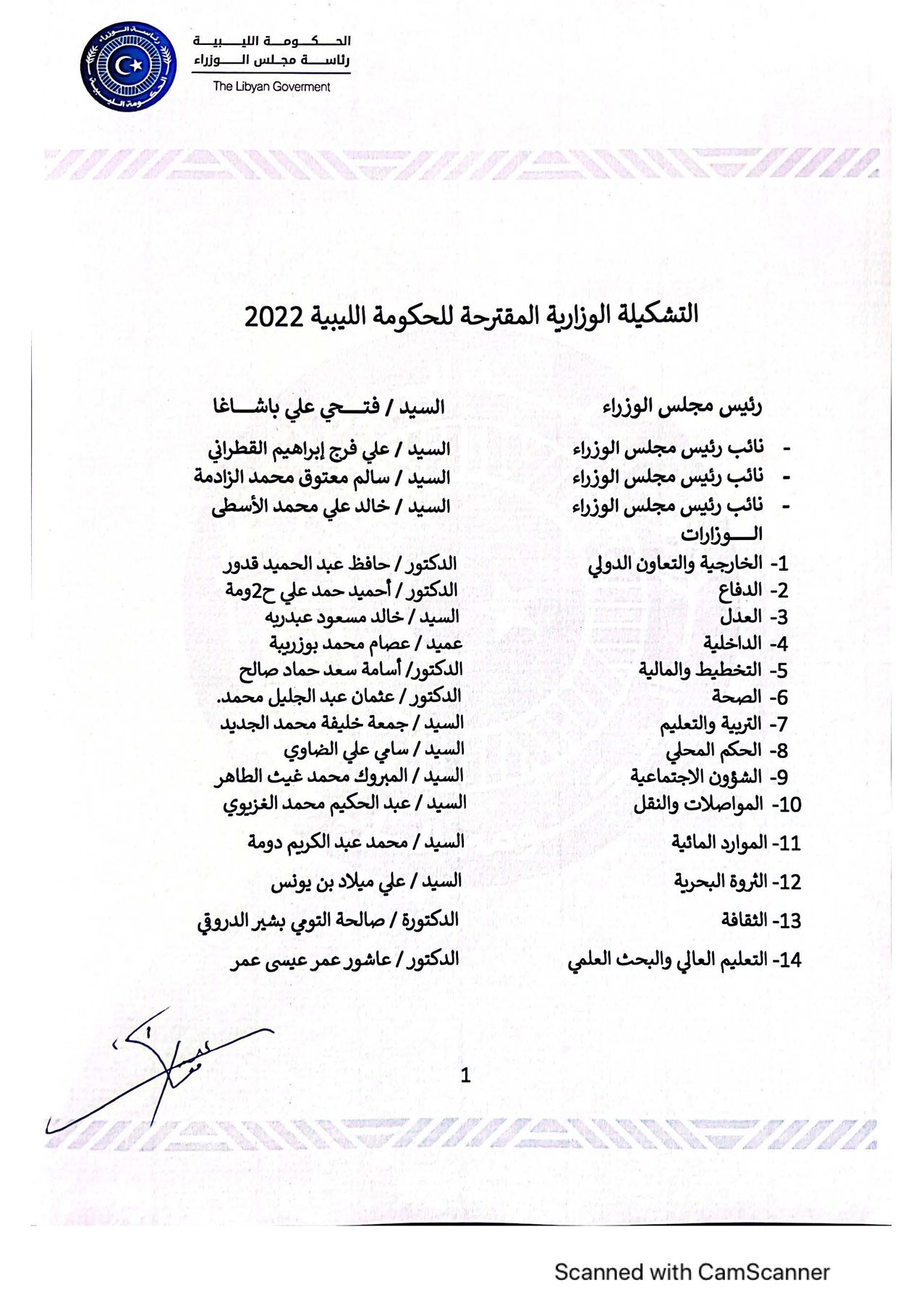 وجاءت قائمة الحكومة الليبية الجديدة كما يلي: