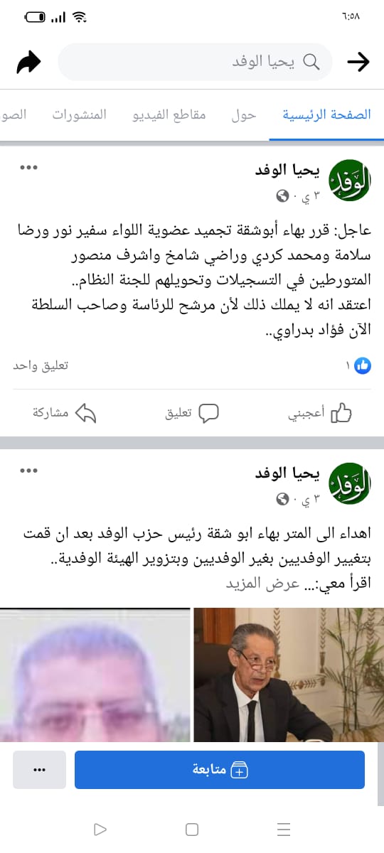 وجاء في البلاغ أن محمد مهاود اعتاد الهجوم والإساءة على الشرفاء، وآخرهم يوم السبت الموافق 26 فبراير الماضى، حيث ادعى الصحفي بالمعاش، علي صفحة إلكترونية هو ناشئها تحت مسمي (يحيا الوفد) بمواقع التواصل الاجتماعي " فيس بوك"، أن رئيس حزب الوفد قرر تجميد عضوية سفير نور، ومحمد كردي، ورضا سلامة، وراضي شامخ، وأشرف منصور، بسبب تورطهم في نشر تسجيلات مسربة وتحويلهم للجنة النظام.
