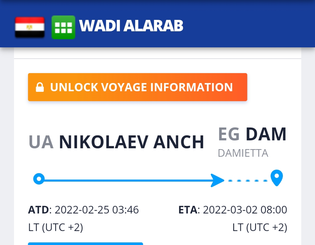 وتعتبر هذه السفينة هي ثاني سفينة مصرية تخرج من أوكرانيا في اتجاهها إلى مصر بعد ساعات من القصف الروسي، إلا أنها الأولى في الوصول إلى الحدود المصرية، حيث سبقها بقرابة 16 ساعة خروج سفينة «بحر العرب» التي خرجت من ميناء اشاكوف، في تمام الساعة 3:40 صباح يوم 25 فبراير، بحمولة قدرها 41 طنا من القمح لصالح الهيئة العامة للسلع التموينية، من إجمالي شحنة كان مُقدرا لها أن تكون 63 ألف طن، إلا أن بدء الاشتباكات العسكرية أدى لتوقف استكمال الشحن، وأصدر وزير التموين تعليماته بالإسراع في عملية شحن السفينة حفاظا على حياة طاقم العمل.