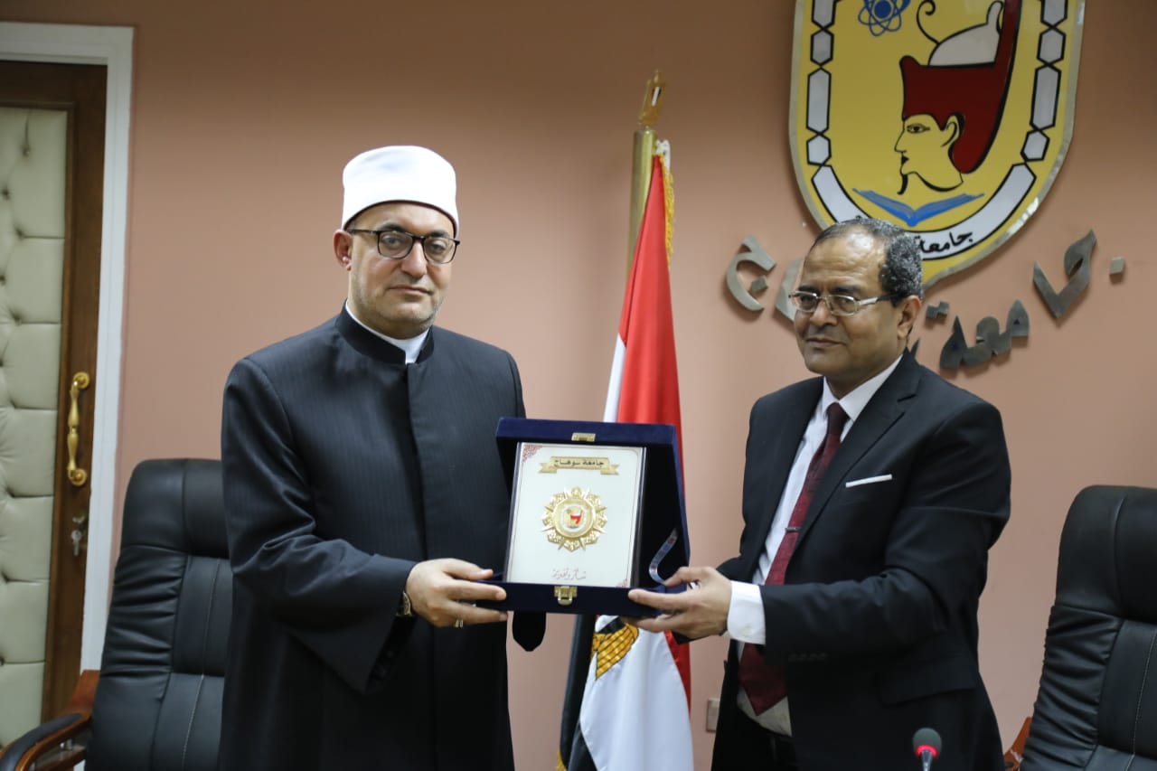 ومن جانبه رحّب رئيس الجامعة بالأمين العام والوفد المرافق له، مشيرًا إلى أهمية الدور العلمي والتوعوي الذي يؤديه الأزهر الشريف بجميع قطاعاته بقيادة فضيلة الإمام الأكبر أ.د. أحمد الطيب شيخ الأزهر الشريف، سواء داخل مصر أو خارجها، ومؤكدًا حاجة طلاب الجامعة إلى المعرفة الوسطية والاعتدال الذي يتميز بهما المنهج الأزهري.