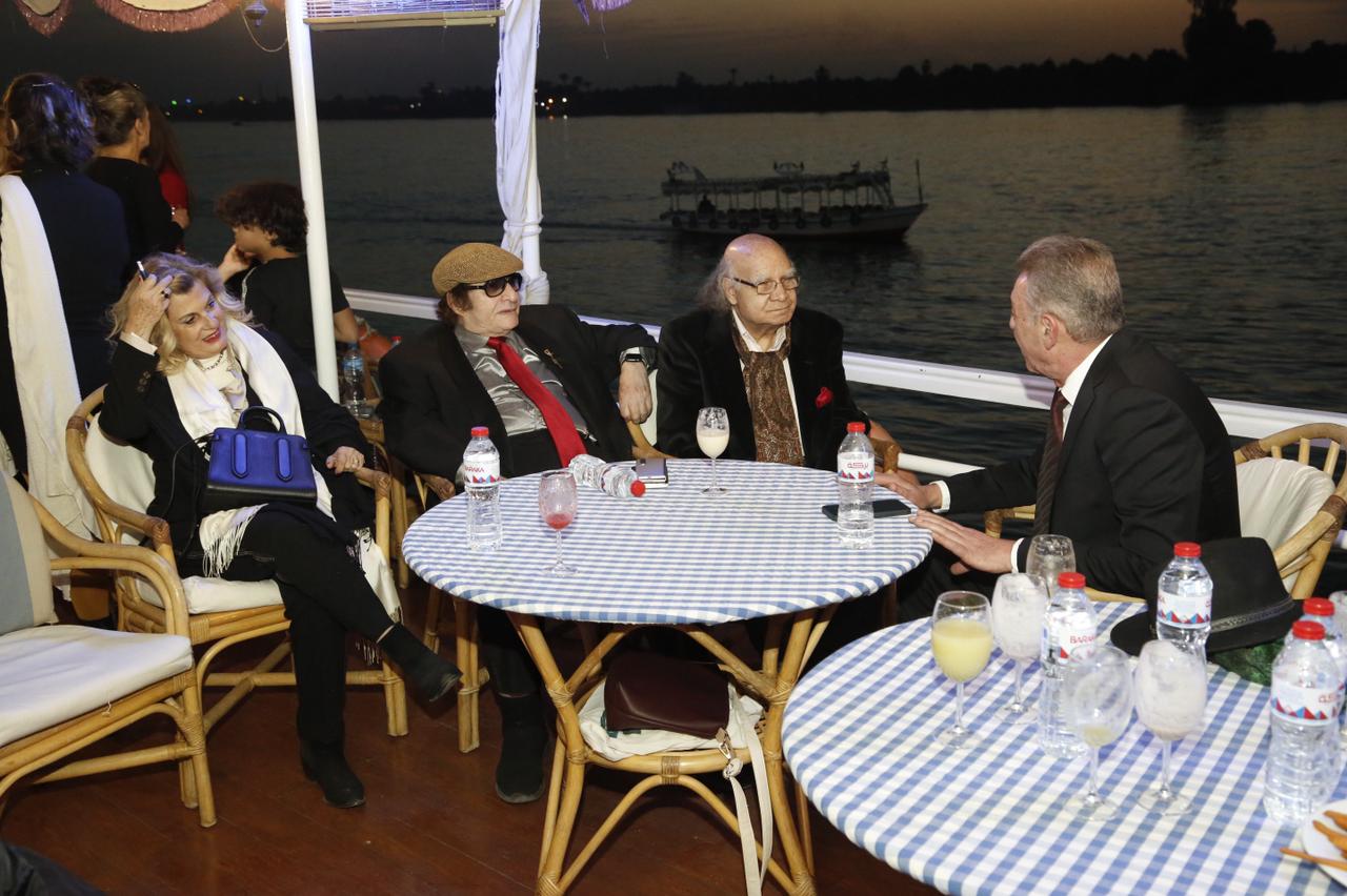 حسين فهمي ونجوم الفن على مراكب نيلية في طريقهم لحفل افتتاح مهرجان الأقصر الـ11| صور