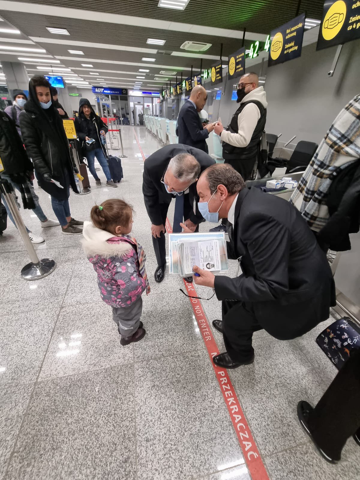 من جهته، قال السفير أحمد حافظ، المتحدث باسم وزارة الخارجية، إنه تنفيذا لتوجيهات الرئيس عبدالفتاح السيسي، بشأن تسيير طائرتيّن إلى بولندا لإعادة المواطنين المصريين المغادرين أوكرانيا، فقد ودع السفير المصري في بولندا مواطنّينا المصريين من مطار كاتوفيتسا، قبل عودتهم للقاهرة.