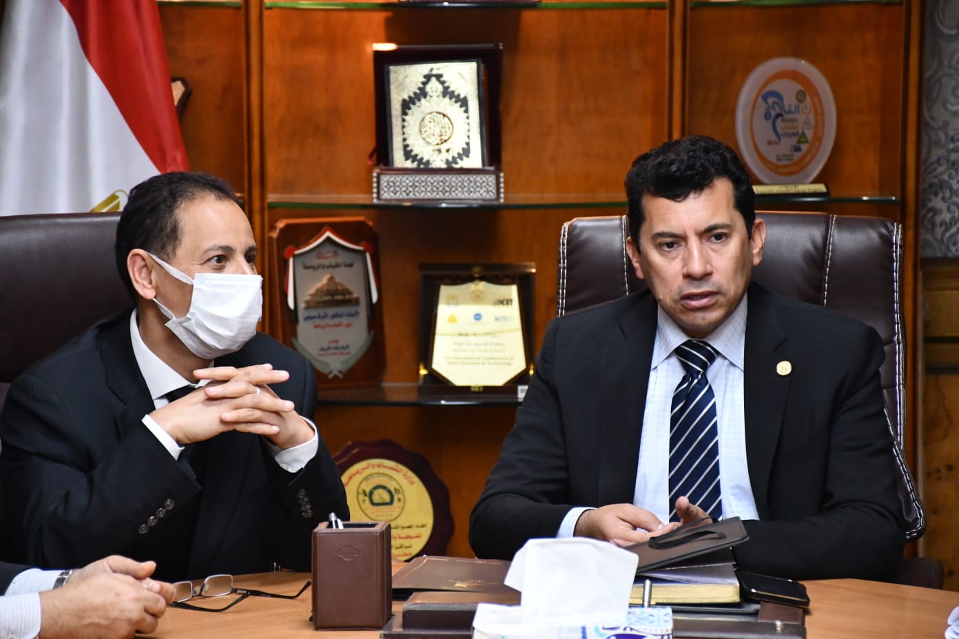 التقى الدكتور أشرف صبحي، وزير الشباب والرياضة الدكتور محمد عمران، رئيس الهيئة العامة للرقابة المالية، بحضور المستشار رضا عبد المعطي، نائب رئيس الهيئة، والمستشار هشام رمضان مساعد رئيس الهيئة، وعدد من رؤساء الإدارات المركزية بالوزارة، ومساعدى الوزير.