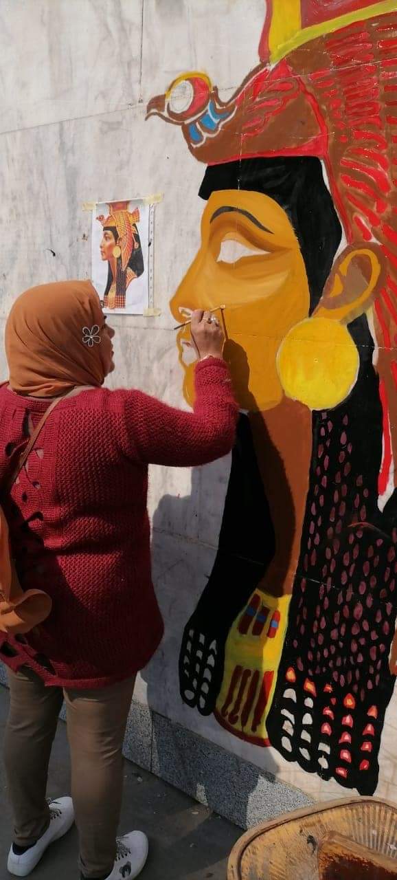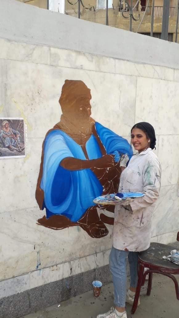 طالبات مدرسة ناصر الثانوية للتعليم الفني يزخرفن جدران حي شبرا | صور