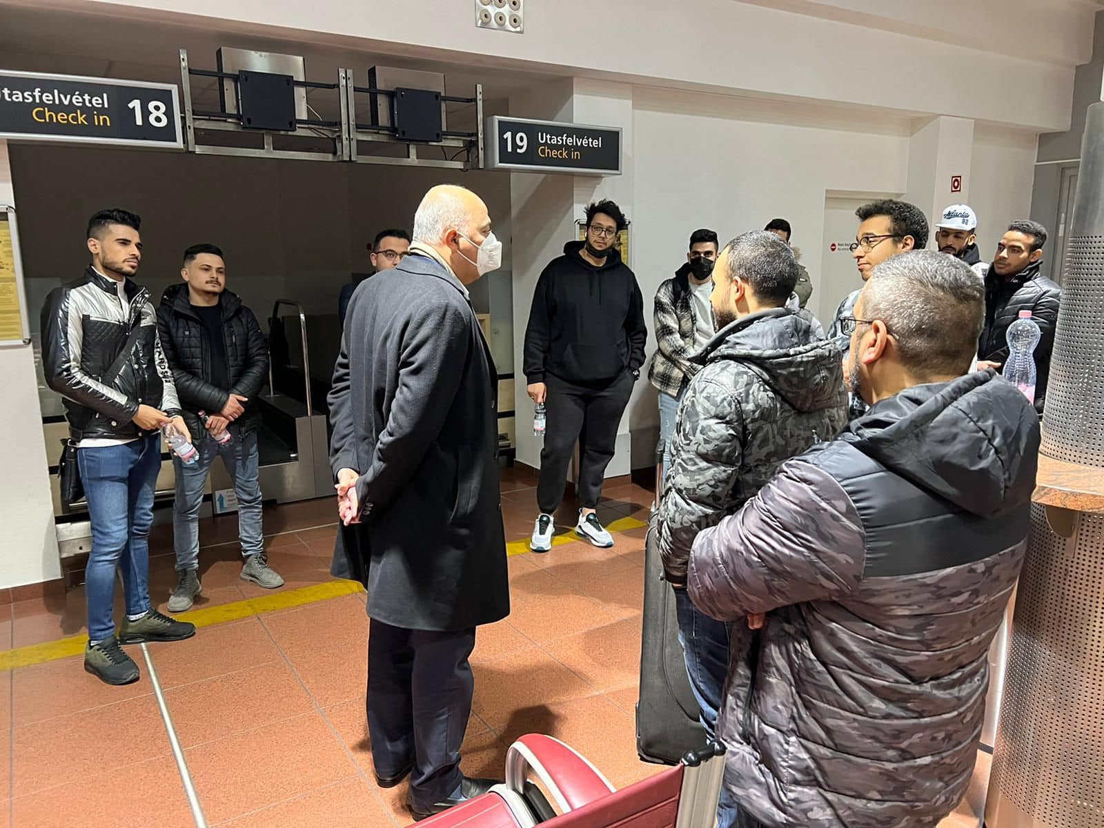 وتوجَّه السفير محمد الشناوي سفير مصر في المجر، وأعضاء من السفارة، إلى مطار بودابست لتوديع المواطنين المصريين المسافرين والتأكُد من إتمام إجراءات سفرهم بسلامة الله عائدين إلى ارض الوطن.