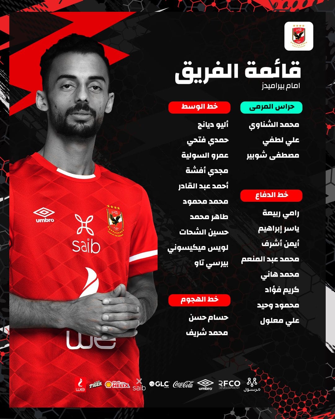 وجاءت قائمة الأهلي للمباراة على النحو التالي:-