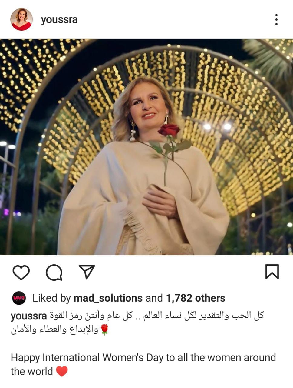 هنأت يسرا المرأة بمناسبة يومها العالمي، حيث نشرت صورة، عبر حسابها الشخصي بموقع انستجرام، وعلقت عليها قائلة: كل الحب والتقدير لكل نساء العالم، كل عام وأنتن رمز القوة والعطاء، والإبداع والأمان.