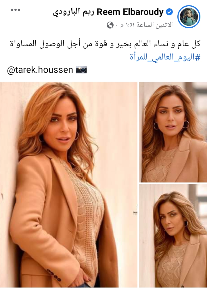 ونشرت ريم البارودي، الصورة عبر حسابها الشخصي بموقع انستجرام، وعلقت عليها: كل عام ونساء العالم بخير، من أجل الوصول للمساواة، اليوم العالمي للمرأة.