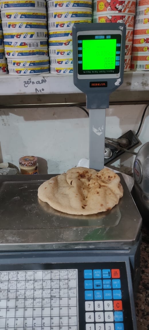 البداية كانت في منطقة وسط البلد، فقد توجهنا فرن في شارع الجلاء في منطقة رمسيس واشترينا منها 2 رغيف سياحي بسعر 75 قرشا، بوزن الرغيفين وجدنا أن وزت الرغيف الأول 45 جراما والثاني 55 جراما.