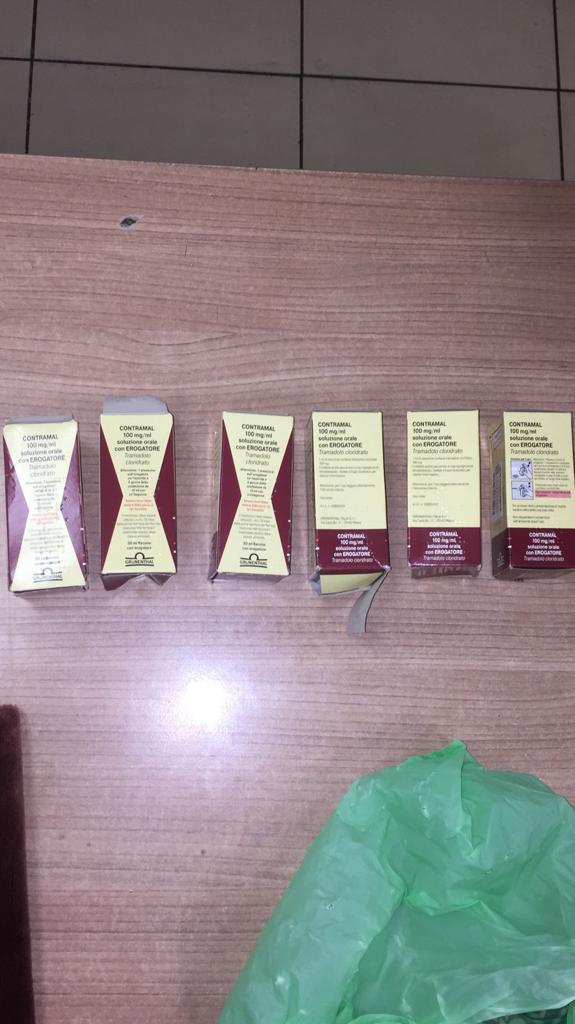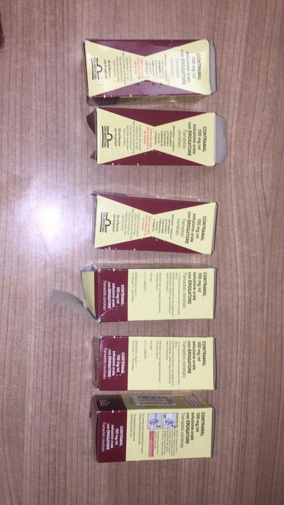 قام محمد الهادي أحمد مدير الحركة المشرف على صالة الوصول بمبني الركاب رقم 2 بتكليف احمد امين محمد مأمور الجمرك بتفتيش حقائب الراكب يدويا فوجد جاكيت خاص بالراكب موضوع فوق عربة حمل الحقائب وبفحصه وجد به كيس بلاستيك بداخله 6 عبوات بها سائل الكونترمال المدرج بجداول المخدرات تركيز 100 ملجم.