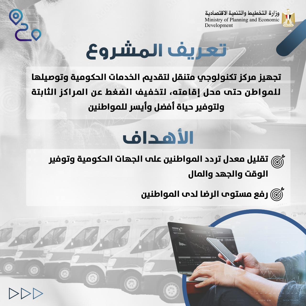 أعلنت وزارة التخطيط والتنمية الاقتصادية، عن الخدمات التي تقدمها المراكز التكنولوجية المتنقلة للمواطنين، والتي تمت إتاحتها، في إطار توقيع الوزارة لعدد من بروتوكولات التعاون مع وزارة الداخلية: قطاع الأحوال المدنية – قطاع المرور والحماية المدنية، ووزارة العدل: قطاع التوثيق والشهر العقاري، لتجهيز عدد من السيارات التكنولوجية المتنقلة.