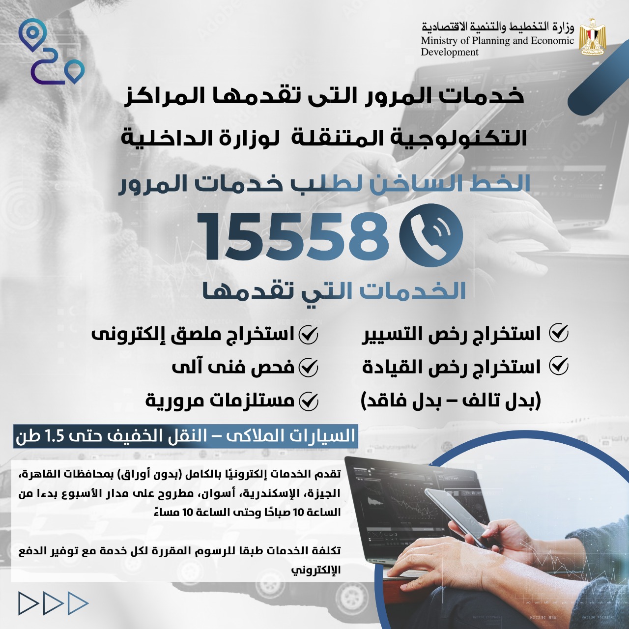 استخراج رخص القيادة وإتاحة الدفع الإلكتروني.. التخطيط: 107 مراكز متنقلة لخدمة المواطنين