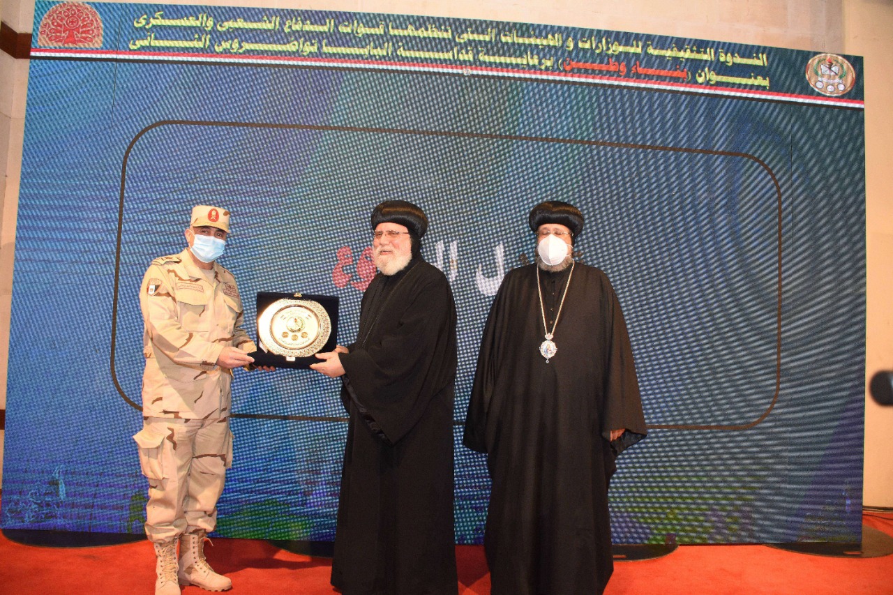 وألقى كلًا من نيافة الأنبا آرميا الأسقف العام ورئيس المركز الثقافي القبطي الأرثوذكسي، ونيافة الأنبا أكليمندس أسقف عام كنائس قطاع ألماظة ومدينة الأمل وشرق مدينة نصر، كلمة عبرا خلالها عن التقدير للدور الذى تؤديه القوات المسلحة في حماية الوطن.