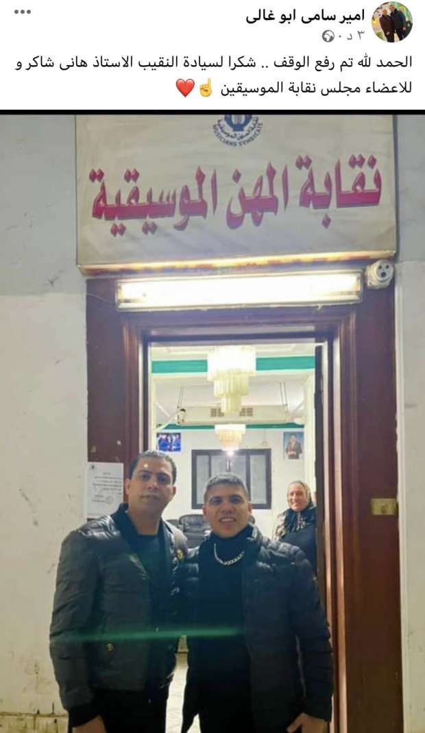 وكتب أمير على حسابه بموقع التواصل الاجتماعي فيس بوك، وقال: الحمد لله تم رفع الوقف، شكرا لسيادة النقيب الأستاذ هاني شاكر ولأعضاء مجلس نقابة الموسيقيين.