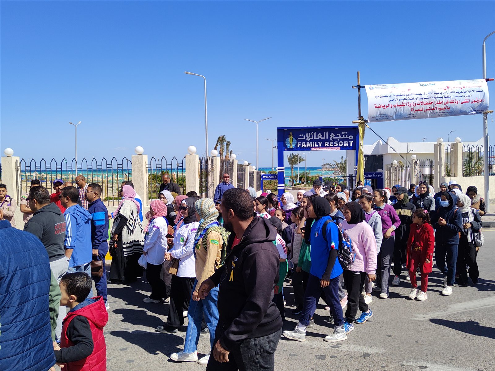 نظمت الإدارة العامة للرياضة بمديرية الشباب والرياضة بالبحر الأحمر، صباح اليوم الجمعة، بالتعاون مع الإدارة المركزية لبرامج التنمية الرياضية مارثون للمشي بمشاركة 100 فتاة.