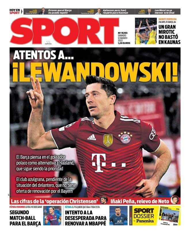 عنونت سبورت في غلافها بـ خيار ليفاندوفسكي، حيث أوضحت أن برشلونة يعتبر المهاجم البولندي بديلًا لهالاند، الذي لا يزال يمثل الأولوية.