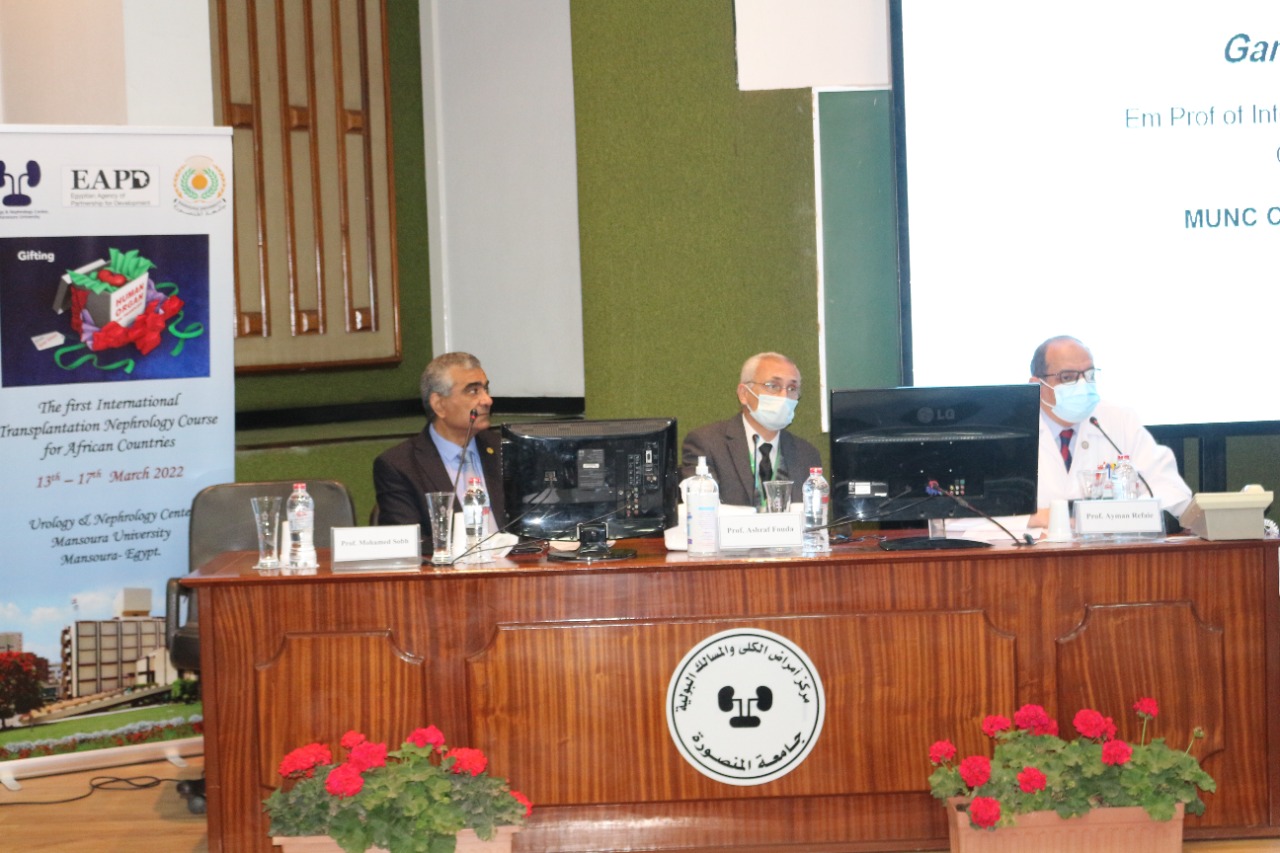 بحضور كل من الدكتور أشرف طارق حافظ، أستاذ جراحة الكلى والمسالك البولية ونائب رئيس جامعة المنصورة لشئون الدراسات العليا والبحوث، الدكتور أسامة الشحات، نقيب الأطباء بالدقهلية، الدكتور تامر أبو السعد، وكيل كلية الطب لشئون الدراسات العليا والبحوث، والدكتور باسم صلاح وديع، مدير مركز جراحة الكلى والمسالك البولية، والدكتور أيمن الرفاعي، رئيس وحدة أمراض وزراعة الكلى بالمركز، وعدد من أساتذة أمراض وزراعة الكلى بالمركز ومعاونيهم، 25 متدرب من17 دولة أفريقية.