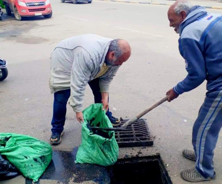 تطهير بالوعات الأمطار ورفع المخلفات والرمال منها بنطاق حى المناخ