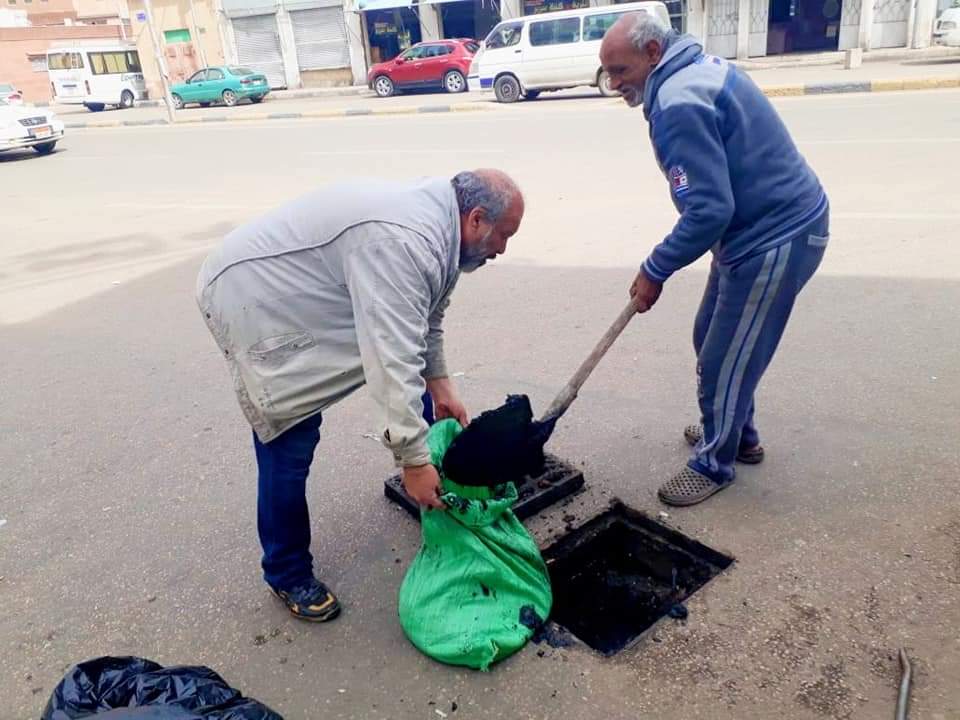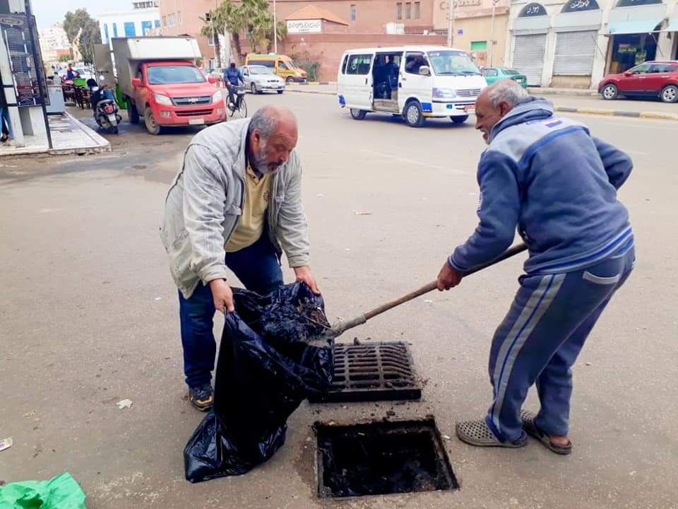أستكمل العمال التابعين للحي، الأعمال في شارع سعد زغلول، وشارع كسرى، ومنطقة العرب القديم بنطاق حى المناخ، ويجري استكمال الأعمال بالمرور تباعًا بكافة المناطق، وذلك حتى لا تغلق الرمال البالوعات وتتسبب في تراكم مياه الأمطار.
