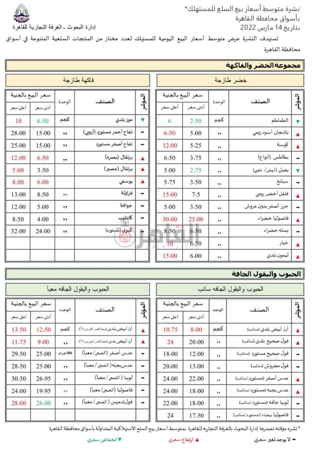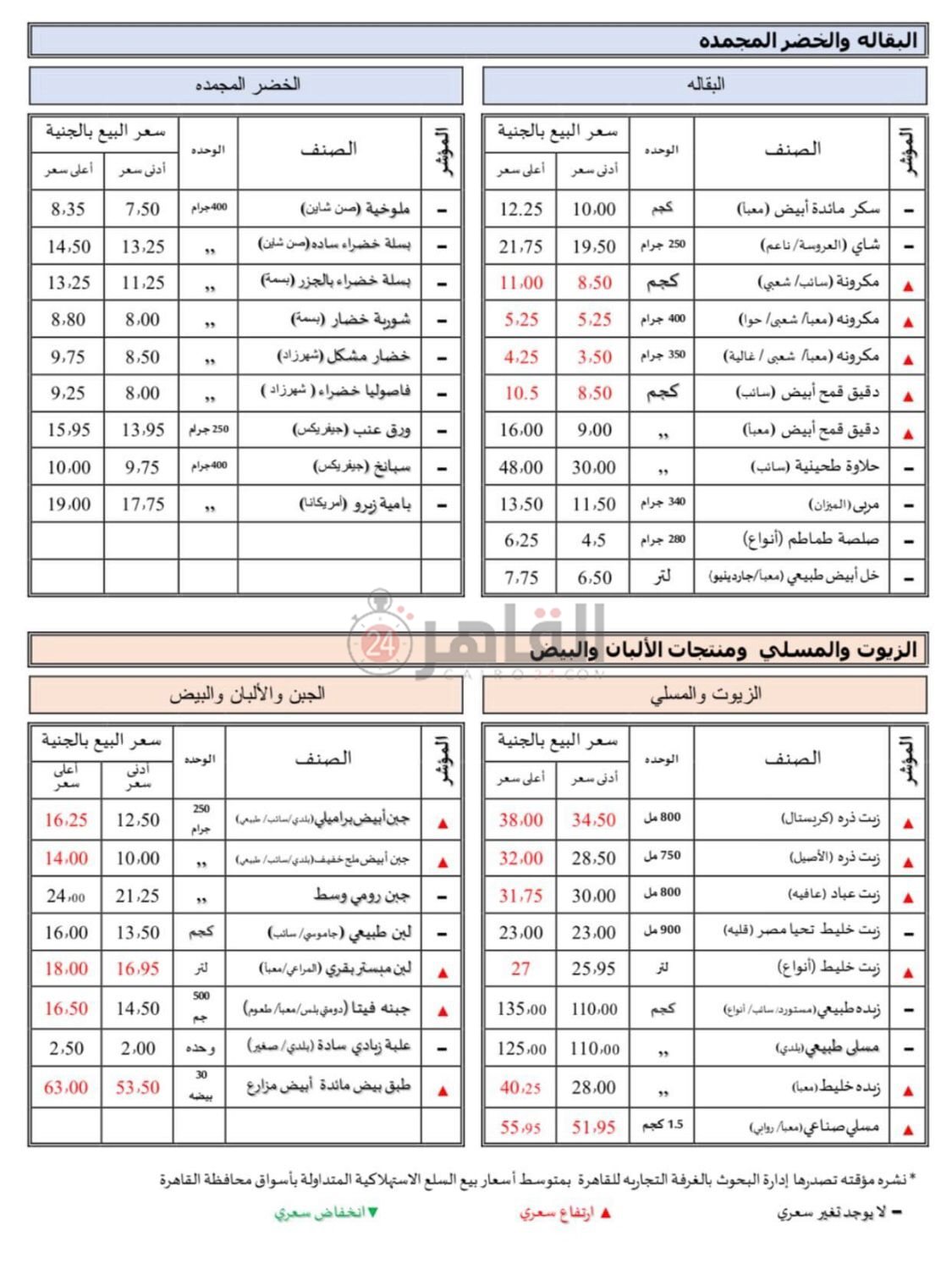 الغرف التجارية تنشر أسعار السلع الغذائية في أسواق القاهرة