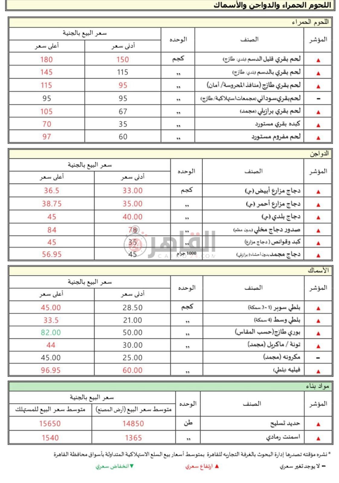 كيلو اللحم البقري: 150 جنيه إلى 180 جنيه.