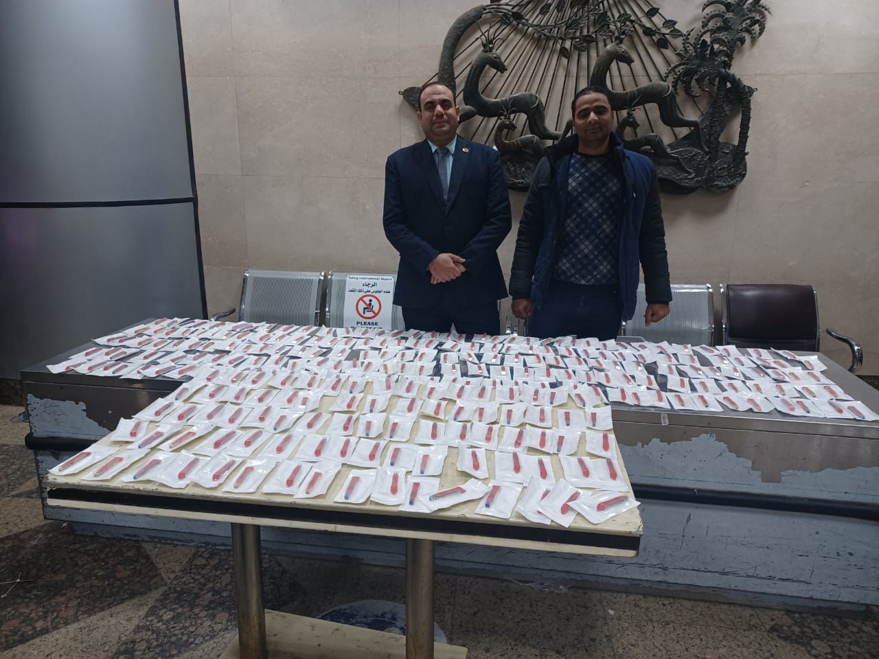 ففي أثناء إنهاء إجراءات وصول ركاب طائرة وييز إيير القادمه من أبو ظبي إشتبه عبدالباسط العويضي مأمور تفتيش الركاب ورمضان بادي رئيس قسم الأمن الجمركي فى راكب مصرى قادم من الامارات، بسؤاله عن وجود بضائع محظوره أو تستحق سداد ضرائب ورسوم أجاب بالنفي.