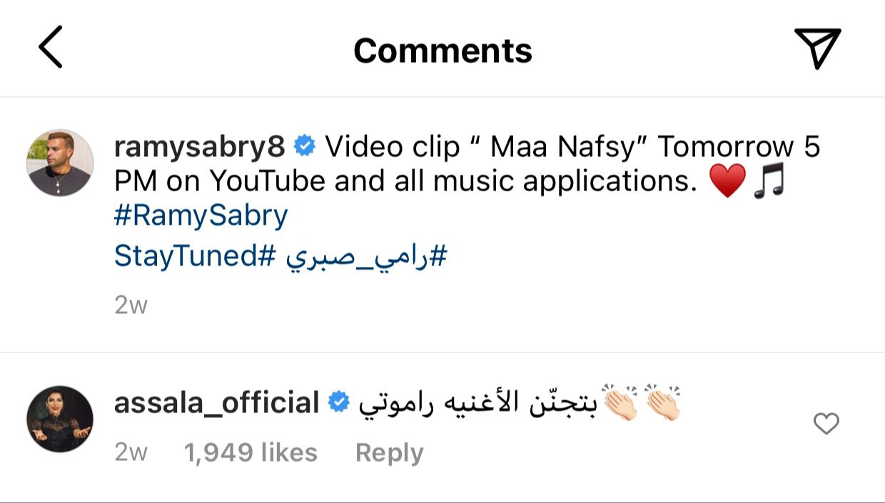 وتسرعت أصالة في تهنئة رامي صبري على أغنيته قبل طرحها ولم تقرأ محتوى المنشور جيدا، وكتبت له: الأغنية بتجنن، لـ يرد الأخير: لسه منزلتش حبيبتي.