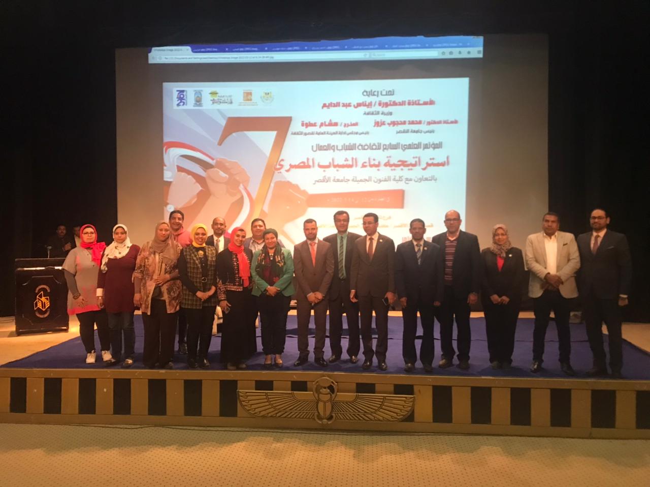 اختتمت فعاليات المؤتمر العلمي السابع للشباب الذي أقيم بعنوان استراتيجية بناء الشباب المصري، التى أقيمت برعاية الدكتورة إيناس عبد الدايم وزيرة الثقافة، ونظمته الهيئة العامة لقصور الثقافة برئاسة المخرج هشام عطوة، في الفترة من 12 مارس وحتى 14 مارس 2022، بقصر ثقافة الأقصر بمحافظة الأقصر، برئاسة أ.د. أحمد محيى حمزة عميد كلية الفنون الجميلة جامعة الأقصر، وبرئاسة شرفية ا.د. محمد محجوب عزوز رئيس جامعة الأقصر، وقامت بتنفيذه الإدارة المركزية للدراسات والبحوث برئاسة د. حنان موسى، من خلال الإدارة العامة للشباب والعمال برئاسة أحمد يسري، أمين عام المؤتمر، وضيافة الإدارة المركزية لإقليم جنوب الصعيد وفرع ثقافة الأقصر وكلية الفنون الجميلة، بحضور لفيف من العلماء الإجلاء والباحثين المميزيين.