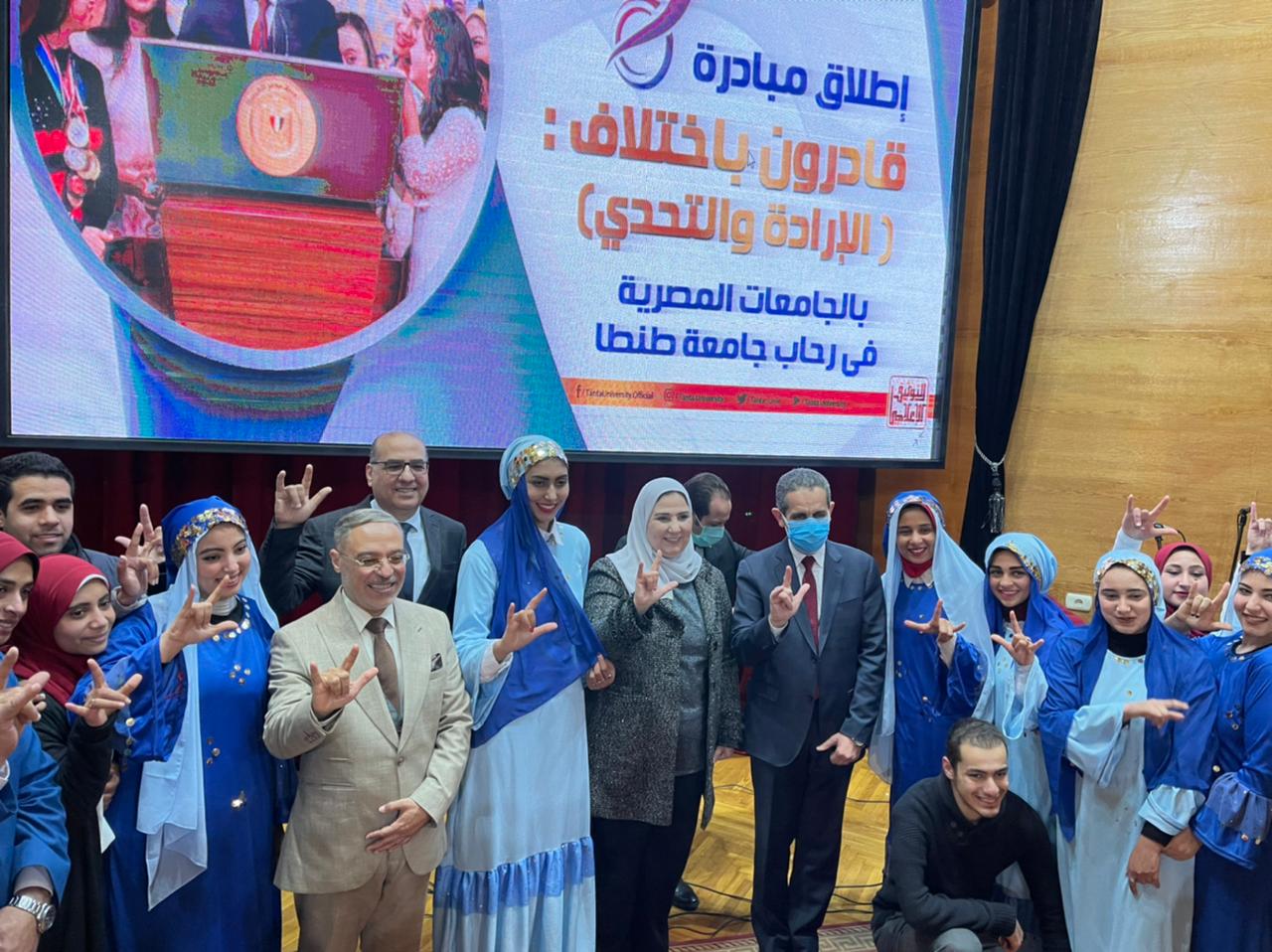 وتوجهت وزيرة التضامن الاجتماعي إلى مقر جامعة طنطا، حيث كان في استقبالها الدكتور محمود زكي، رئيس جامعة طنطا؛ لإطلاق مبادرة قادرون باختلاف، التي تنظمها وحدات التضامن الاجتماعي بالجامعات المصرية بالتعاون مع جمعية الهلال الأحمر المصري والجمعية الشرعية الرئيسية والاتحاد المصري لسياسات الحماية الاجتماعية، ويشرف عليها الدكتور صلاح هاشم مستشار وزارة التضامن الاجتماعي للسياسات الاجتماعية ومنسق عام برنامج وحدات التضامن الاجتماعي بالجامعات المصرية، حيث تستهدف الوزارة تنفيذها في كافة الجامعات المصرية بما يشمل 25 جامعة حكومية بالإضافة إلى جامعة الأزهر بفروعها الثلاثة، وجامعة خاصة.