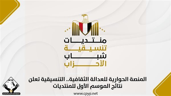 تعلن تنسيقية شباب الأحزاب والسياسيين، نتائج فاعليات الموسم الأول للمنتديات، تحت عنوان المنصة الحوارية للعدالة الثقافية، حيث يتناول الموسم الأول للمنتديات 4 محاور ضمن ملف العدالة الثقافية وهي محور تطوير قصور الثقافة، ومحور محو الأمية ومكافحة الإدمان، ومحور أطفال بلا مأوى أطفال الشوارع.