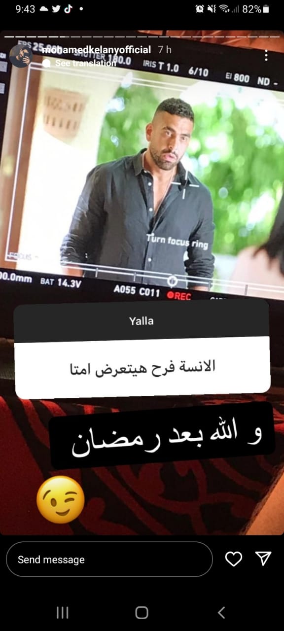ورد محمد كيلاني، على سؤال أحد متابعيه، الذي استفسر عن موعد عرضه أجدد أجزاء الأنسة فرح، من خلال ستوري عبر حسابه بموقع تبادل الصور والفيديوهات انستجرام، وقال: بعد رمضان.
