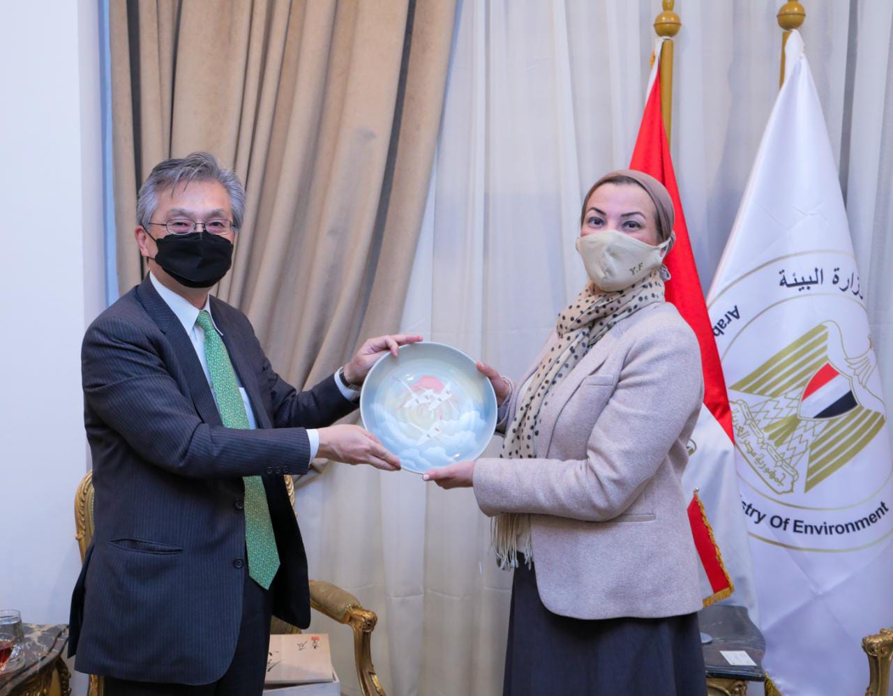 وأثنت وزيرة البيئة على التعاون المصري الياباني الممتد في مجالات البيئة، ودور الجانب الياباني في تقديم الدعم الفني لوزارة البيئة منذ بدايتها، مرحبةً ببحث سبل التعاون الثنائي في مجال الحد من مخلفات البلاستيك خاصة في المناطق البحرية، في ظل اهتمام مصر وجهودها في مواجهة هذا التحدي، خاصة مع إصدار اول قانون لإدارة المخلفات في مصر عام 2020 ولائحته التنفيذية منذ أسابيع قليلة، وتضمنه لاجراءات منظمة للحد من استخدام الأكياس البلاستيكية أحادية الاستخدام.