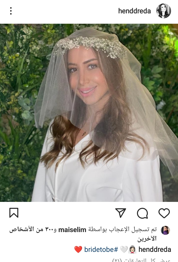 شاركت الإعلامية هند رضا، صورة جديدة لها وهي مرتدية طرحة زفاف في ليلة الحنة، حيث من المقرر إقامة الزفاف قريبًا.