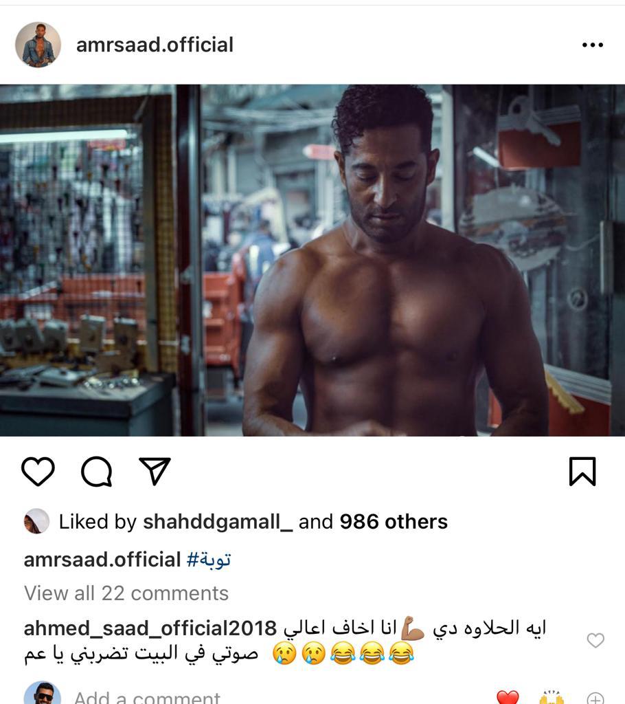 ومن جانبه نشر الفنان عمرو سعد صورة له من كواليس تصوير شخصيته بمسلسل توبة عبر حساباته الرسمية بمواقع التواصل الاجتماعي المختلفة وعلق عليها قائلا: توبة، ليرد عليه شقيقه النجم أحمد سعد في التعليقات قائلا: إيه الحلاوة دي أنا أخاف أعلي صوتي في البيت لتضربني ياعم.