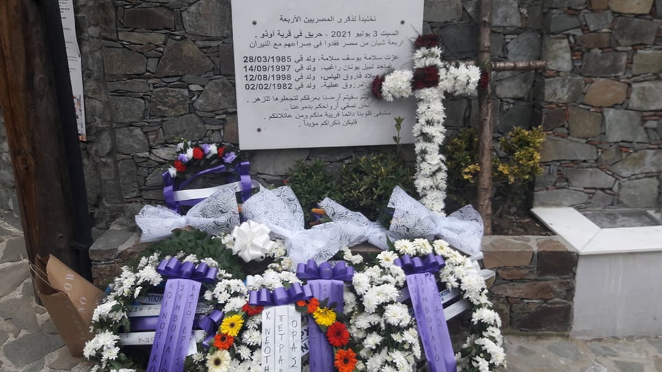 نسقي أرواحكم بدموعنا.. قبرص تضع نصبًا تذكاريًّا للمصريين الأربعة المتوفين في حرائق الغابات| خاص