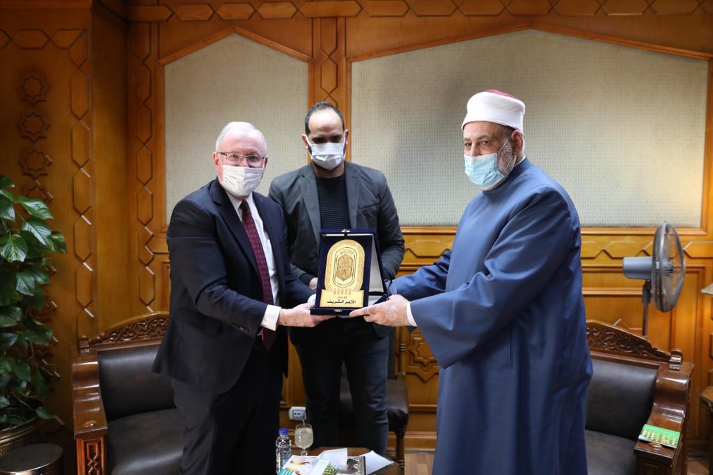 وفي نهاية اللقاء أهدى فضيلة الدكتور محمد الضويني، وكيل الأزهر الشريف، للسيد راندي فانك درع الأزهر الشريف ونسخة من وثيقة الأخوة الإنسانية باللغة الإنجليزية، كما أهدى السيد فانك لوكيل الأزهر الشريف نموذجا لأحد الكتب التي عملت الكنيسة على ترجمتها لتحقيق التقارب والتعريف بالإسلام في أمريكا.